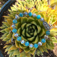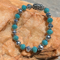 Turquoise & Silver crystal rondels with silver accent bead on elastic